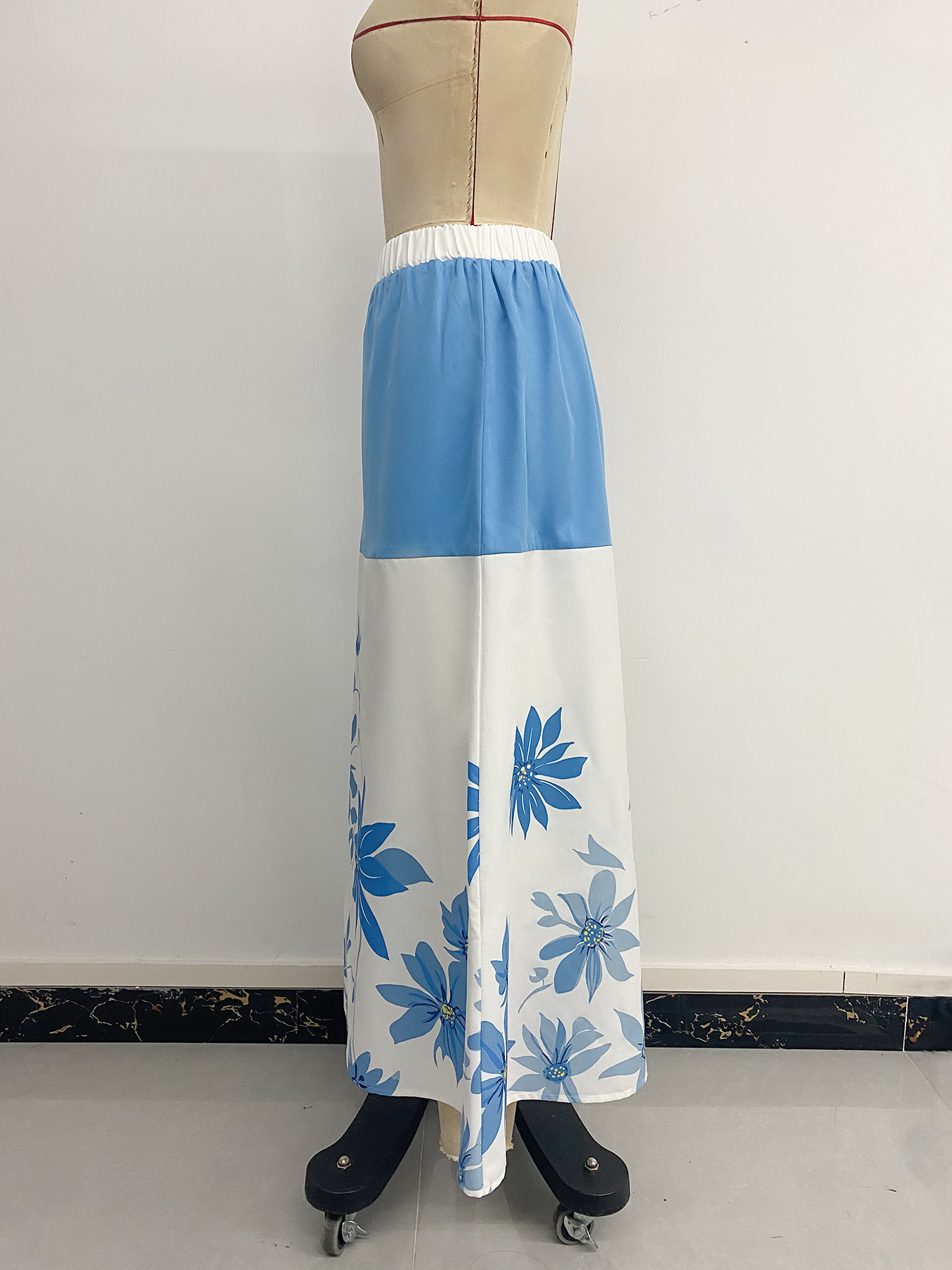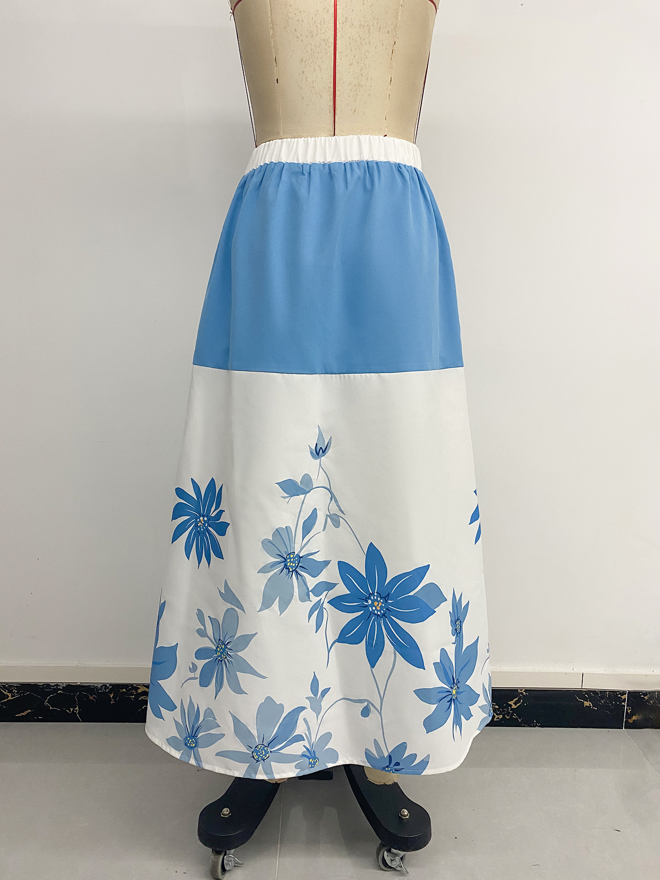 Women’s Printed Patchwork High-Waisted A-Line Maxi Skirt – Boho Casual Fashion